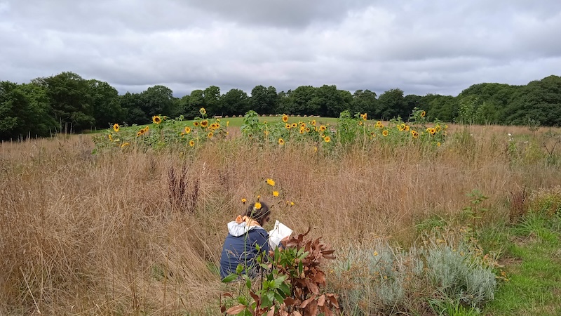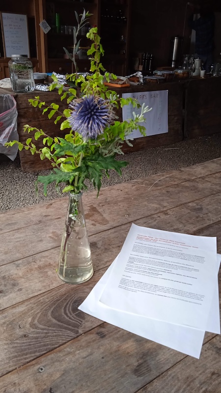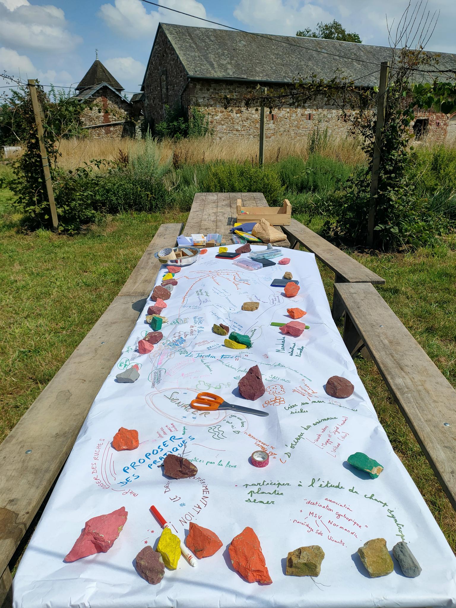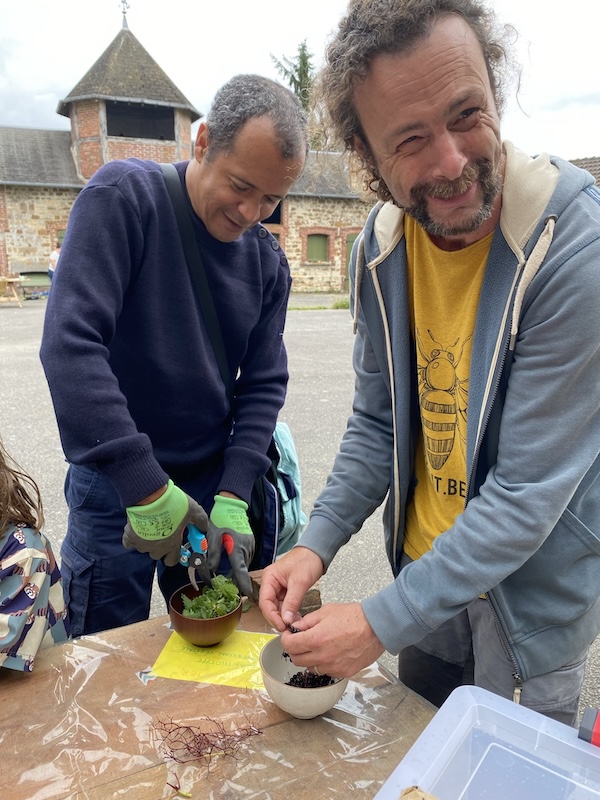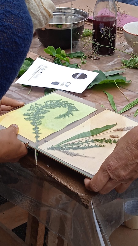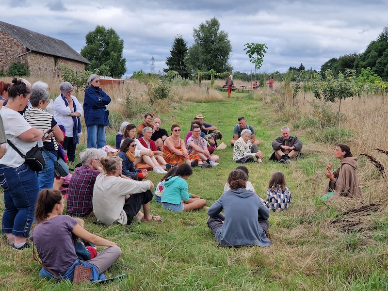 Le programme de cette 5e édition nommée « Au-dessus des sources » (en référence à la randonnée proposée ce même jour autour du thème de l’eau verte en partenariat avec Territoires Pionniers et le programme Nous sommes Orne), fut comme à son habitude agri-culturel et convivial: entre visites des jardins (mandala, syntropie, sols vivants, serres), expositions (projet de la Mue avec l’Atelier MOS et ateliers du vivant co-créée par les élèves en CAP du lycée Flora Tristan de la Ferté-Macé), ateliers découvertes de pratique artistique (compost du zine, guidé par Emilie Gallier, l’anthotype, impression végétale, avec Marich Devise) et performances (contes de Flora Delalande et musique Derico da Purificação & André Villa).